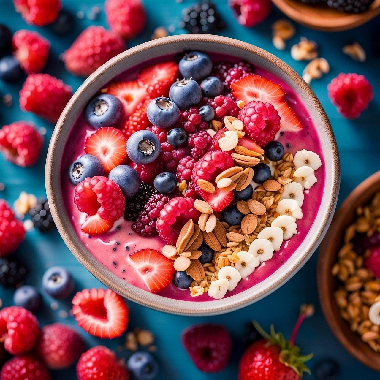 - Nüsse und Samen: Mandeln, Walnüsse, Haselnüsse, Kürbiskerne oder Hanfsamen – diese Zutaten sorgen für den perfekten Crunch und liefern gesunde Fette, Proteine und Mikronährstoffe wie Zink und Magnesium. Sie sind ideal für ein nahrhaftes Frühstück, besonders für Sportler.